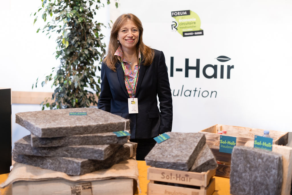 🌿Maria Vaccaro et Yann Thomas de SOL-HAIR Insulation, créateurs de panneaux isolants biosourcés à partir de déchets de cheveux recyclés.
